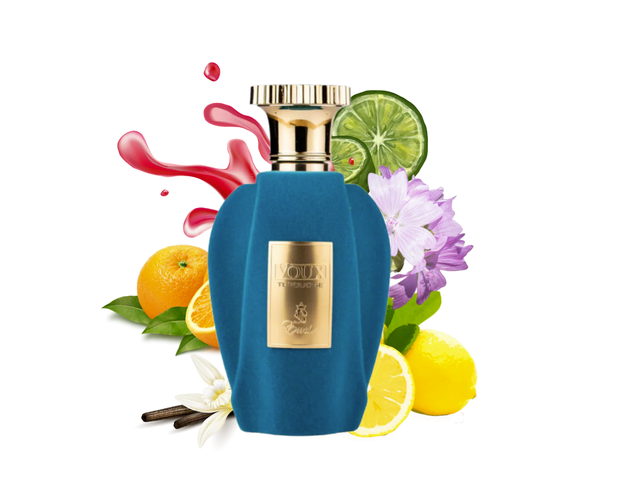 Voux Turquoise Eau de Parfum es una brisa ligera que ha volado hasta ti desde un floreciente jardín de cítricos... Atraerá tanto a hombres como a mujeres. Le complacerá la increíble duración de la fragancia en la ropa y el cuerpo. Un sofisticado sonido de nicho decorará un atuendo elegante. Le proporcionará una conexión con los cuentos orientales y un tren de misterio.