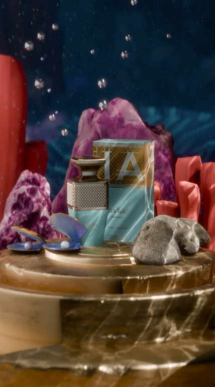 Perfectly balanced between marine and woody accords, Zodiac Solmaris delivers a feeling of freedom, freshness, and quiet sophistication. Its turquoise and gold bottle mirrors this duality—bright and luminous like the sea, refined and elegant like polished wood.
